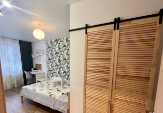 уютная, светлая, тихая однокомнатная квартира, бытовая техника есть, стоянка на огороженой территории под камерами, вход и въезд во двор по ключу, спортивная и детская площадка, консьерж. магазины, и общественный транспорт рядом.