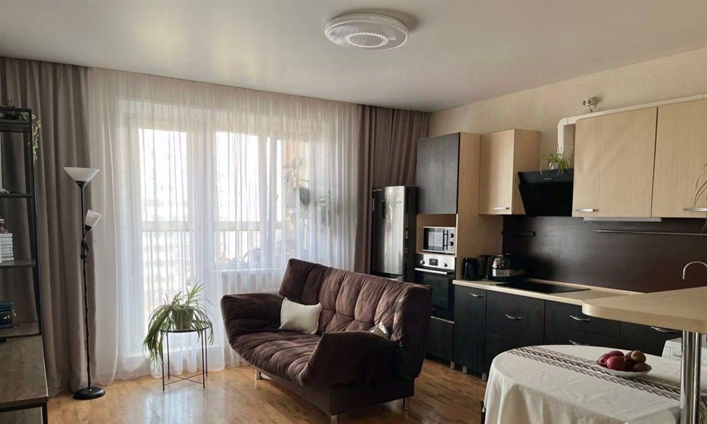очень светлая и теплая квартир студия с одной спальней.спальная в светлых тонах.поменяны межкомнатные двери, натяжные потолки.ванная комната в кафеле. установлена чугунная ванна не шумит от воды как стальная.современная планировка для максимально комфортного проживания, гостиная для проведения уютного вечера в семейном кругу или с друзьями, с рабочей и обеденной зонами, и спальная для уединения и сладкого сна.большая лоджия дополнительная зона отдыха в летний период, чтения книги или утреннего кофе с видом на рассвет.сделка по продаже обязательная нотариальная, что дает покупателю дополнительную гарантию безопасности от нотариуса.в качестве бонуса без доплаты остается кухонный гарнитур без техники, вытяжка, барная стойка.микрорайон хорошо известен челябинцам своими зелеными прогулочными дорожками, парками, инфраструктурой для детей.рядом с домом остановка транспорта, школа оц 2, во дворе детский садик 100, магазины и многое другое.фото не передают всех преимуществ данной квартиры.звоните и договаривайтесь на просмотр сейчас пока квартира еще в продаже.номер объекта 154343723208