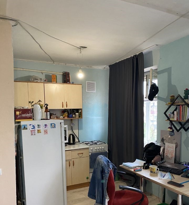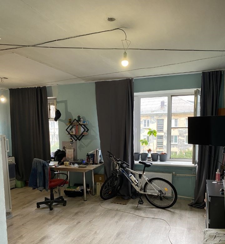 квартира очень светлая в комнате 2 окна и теплая, окна во двор.квартиру покупали без ремонта. ремонт сделан частично поменяли проводку, трубы, установили одно евроокно, новые радиаторы.демонтировали фанерную перегородку между комнатой и кухней, получилась квартира по типу большой студии перегородку можно восстановить.квартира без балкона.сузел совмещен, без ремонта, сантехника новая, трубы поменяны. кухонный гарнитур и газовая плита остаются. чистый подъезд. домофон. хороший зеленый двор. отличное расположение дома дом расположен внутри квартально, в шаговой доступности школа, ясли, садик, магазины, банки, парк сад победы, отличная транспортная развязка, парковки. 1 взрослый собственник. возможна продажа по ипотеке. торг уместен. покупателям с одобренной ипотекой сбербанка дополнительная скидка при выборе квартиры на платформе банка предоставляется скидка от 0,2 от одобренной процентной ставки.